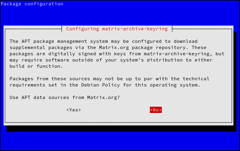 • Make sure apt(8) uses the newly added key for Matrix.org repository only?